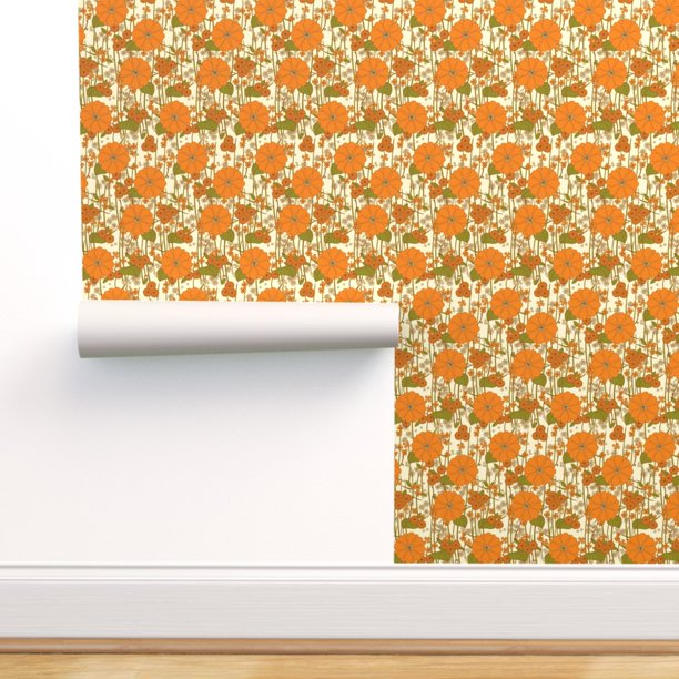 Commercial Grade Wallpaper 27ft X 2ft Retro Orange Garden Vintage Floral Botanical Bright Flowers Traditional Wallpaper By Spoonflower Walmart Com